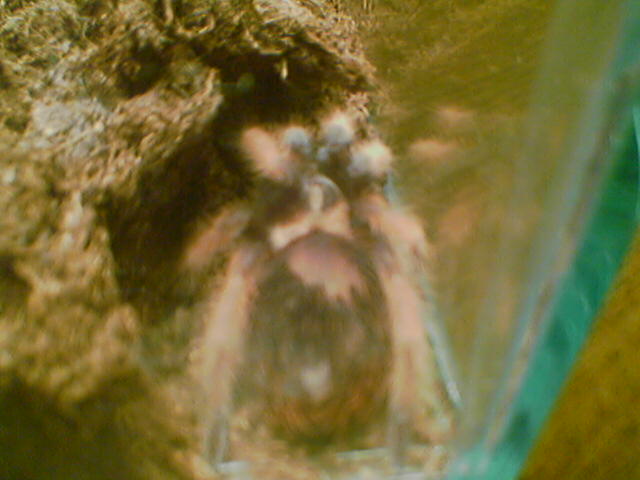 Нужна фотка получше, желательно не через стекло. Паук хорошо наетый и скоро будет линять. Следи за влажностью.