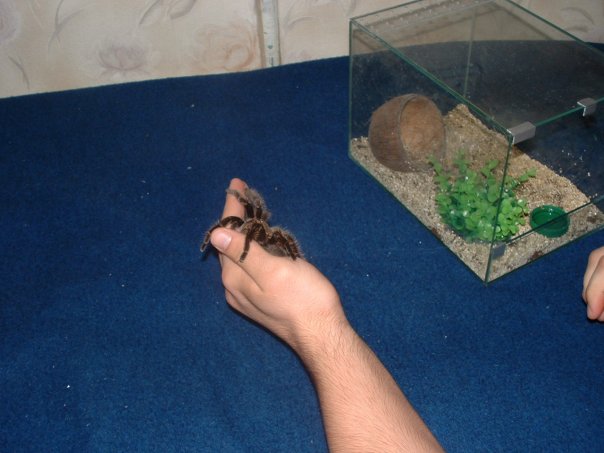 Psalmopoeus cambridgei - не помню какая линька, вроде больше 11. Длина тела не меньше 5 см. Самка или самец - не знаю, но крючков вроде не видел Вместе с терром для взрослых древесников.
